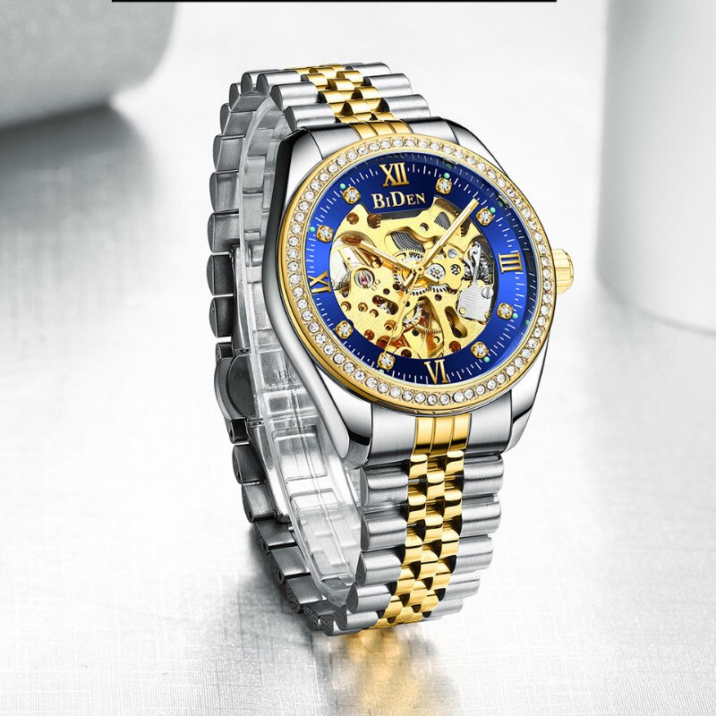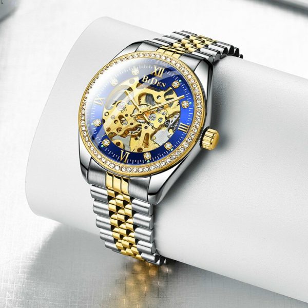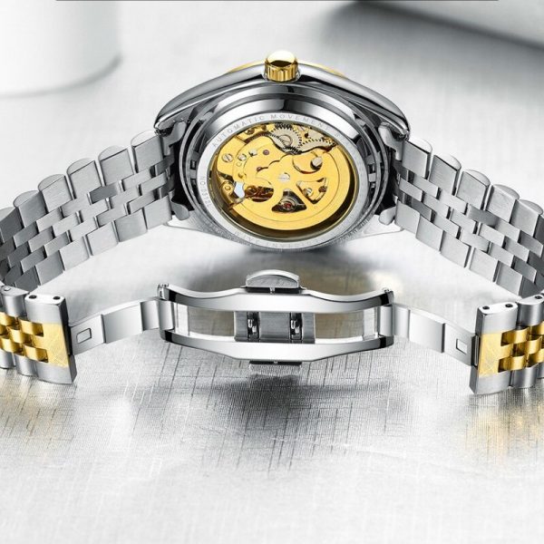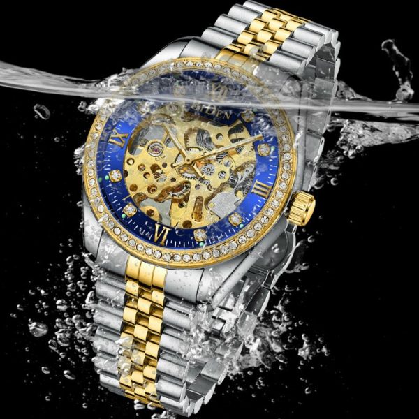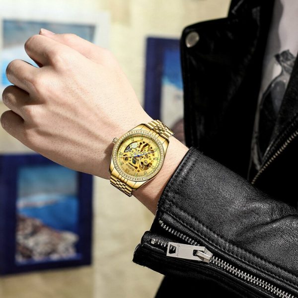 Luxury Gold men Automatic Mechanical Watches men Fashion Stainless Steel Clock male Crystal Hollow Skeleton Watch Saati